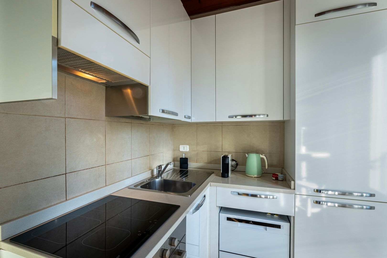 Cucina: tostapane, piano cottura, forno, utensili da cucina, lavastoviglie.